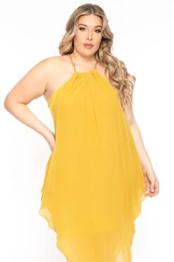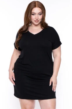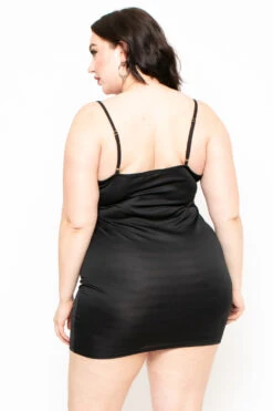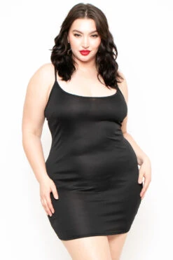 This plus size, stretch knit bodysuit features a v-neckline, snap bottom closure, and a sleeveless cut.