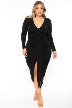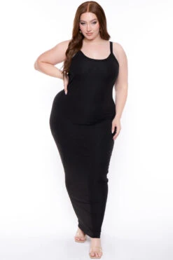 This plus size, stretch two-piece set features a crop top with a scoop neckline, short sleeves, elastic ribbed crop hem, a matching skirt with an elastic waist, and form fitting silhouette