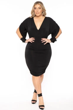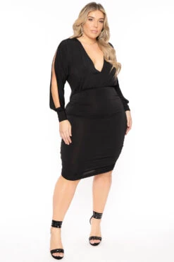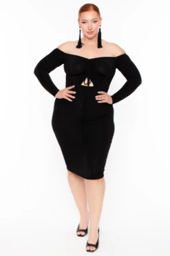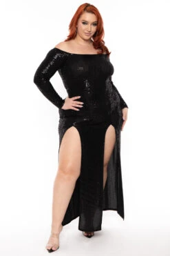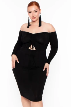 This plus size, stretch two-piece set features a crop top with a scoop neckline, short sleeves, elastic ribbed crop hem, a matching skirt with an elastic waist, and form fitting silhouette