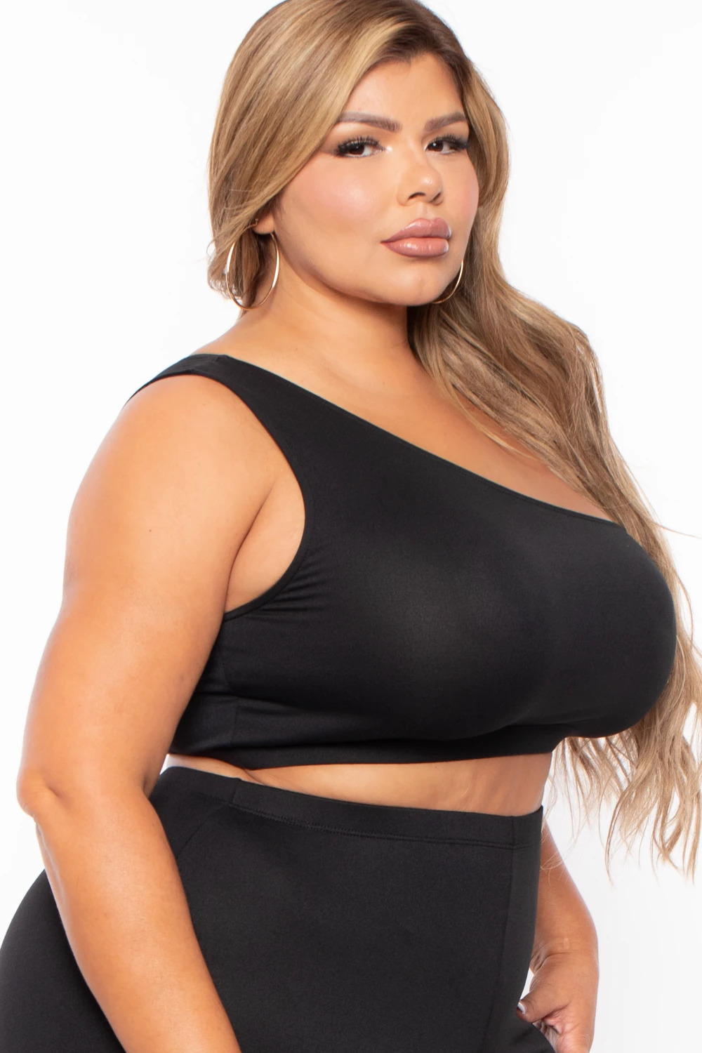 This plus size, stretch butter soft knit top and leggings set. The top features an asymmetric neckline, sleeveless, ankle length leggings has an elastic waist, sleek fit. Versatile from yoga to a night out.
