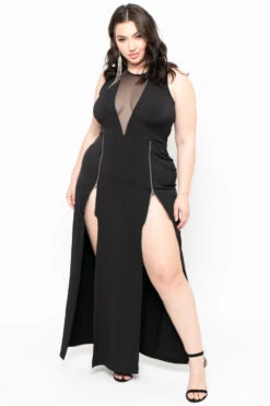 This plus size, stretch dress features a round neckline, sleeveless, self tie sash at the front and a matching cardigan with slim sleeves
