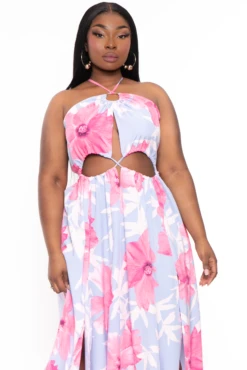 Plus Size Kalena Twist Front Maxi Dress – Pink