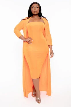 Plus Size Shelly 2PC Duster And Tube Dress – Orange