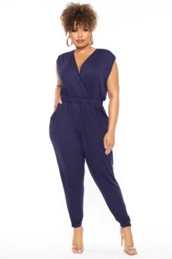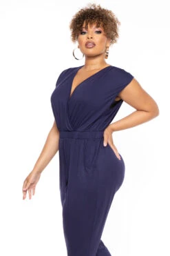 Plus Size Rosewood Cross Front Jumpsuit – Navy