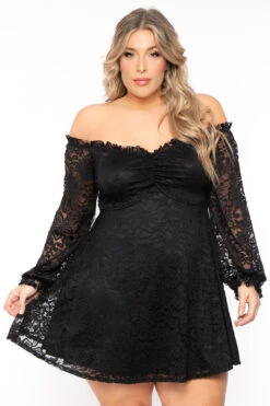 Plus Size Veronica Long Sleeve Lace Dress- Black