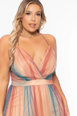 Plus Size Avianna Maxi Glitter Dress – Blush
