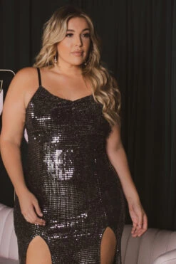 Plus Size Zahrah Sequins M-Slit Dress – Silver