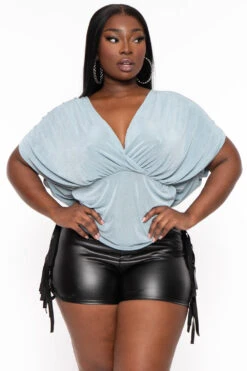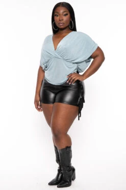 Plus Size Oveta Ruched Dolman Blouse -Blue
