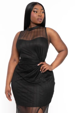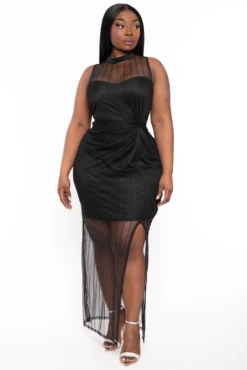 Plus Size Cecilia Striped Mesh Maxi Dress- Black